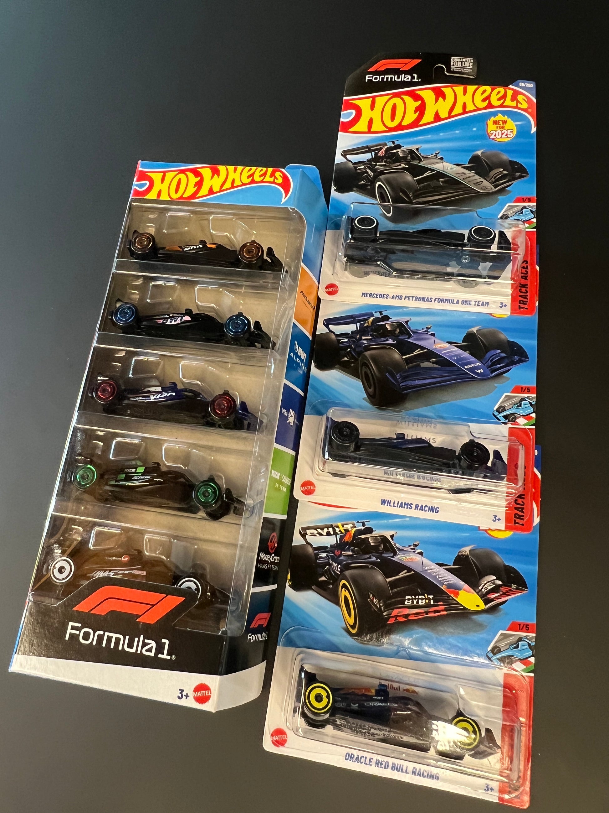 Five pack plus one each Red Bull, Mercedes and Williams